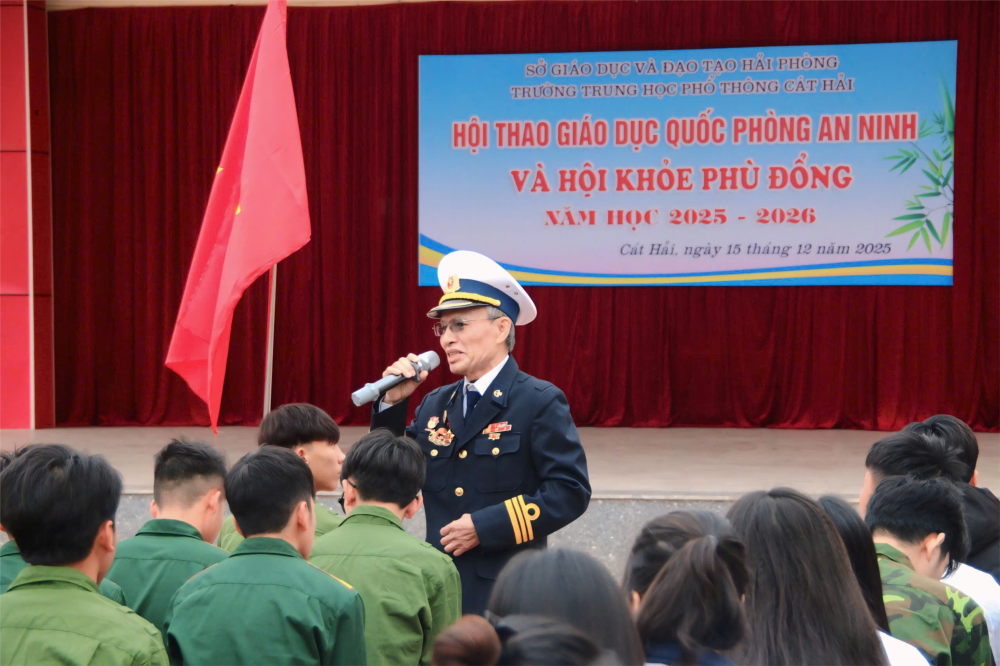 Chương trình vinh dự được đón tiếp bác Lê Phú Vinh – cựu học sinh khóa 5 Trường THPT Cát Hải tham gia giao lưu, tuyên truyền truyền thống. Qua những câu chuyện gần gũi, sâu sắc, các em học sinh thêm tự hào về lịch sử dân tộc, truyền thống vẻ vang của Quân đội nhân dân Việt Nam, từ đó nâng cao nhận thức, bồi đắp lý tưởng sống và tinh thần trách nhiệm của thế hệ trẻ trong công cuộc xây dựng và bảo vệ Tổ quốc.