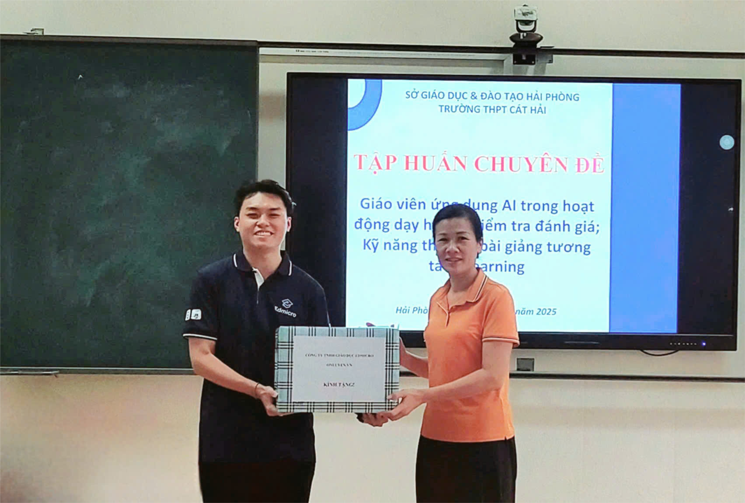 Nhằm nâng cao năng lực ứng dụng công nghệ thông tin trong giảng dạy và kiểm tra, đánh giá. Ngày 6/8/2025, Trường THPT Cát Hải đã tổ chức buổi tập huấn dành cho giáo viên về sử dụng trí tuệ nhân tạo (AI) và kỹ năng thiết kế bài giảng tương tác E-Learning.
