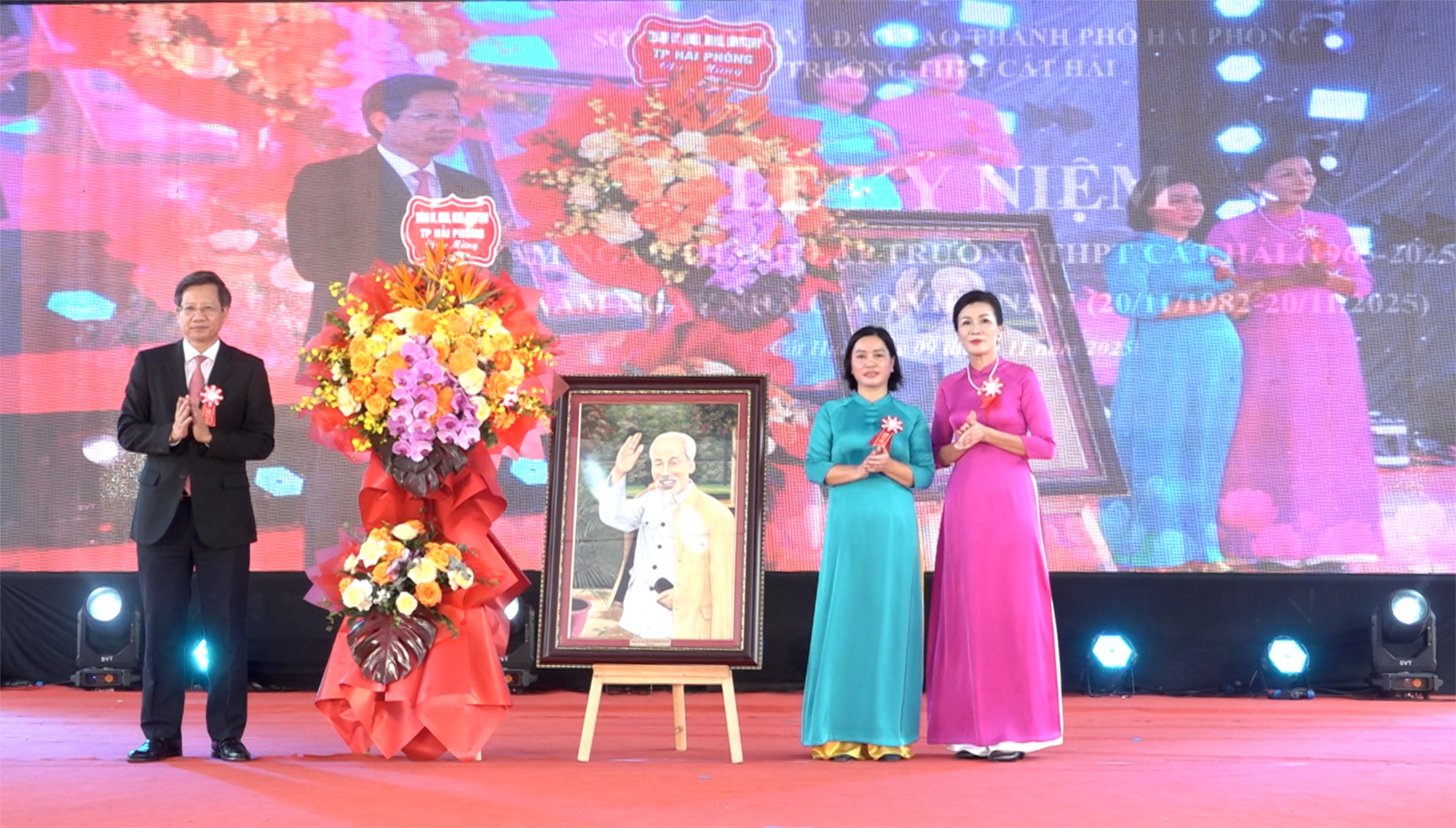 Dự lễ có đồng chí Lê Anh Quân – Ủy viên Ban Thường vụ Thành ủy, Phó Chủ tịch Thường trực UBND thành phố; lãnh đạo Sở GD&ĐT, lãnh đạo Đặc khu Cát Hải cùng đông đảo cựu giáo viên, học sinh qua các thời kỳ.