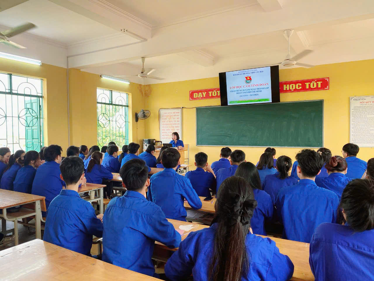 Thực hiện chương trình công tác Đoàn và phong trào thanh niên năm học 2024 - 2025, hướng tới chào mừng các ngày lễ lớn 20/11, 26/3, 19/5 Đoàn Trường THPT Cát Hải đã tổ chức lớp cảm tình Đoàn và lễ kết nạp đoàn viên mới cho các học sinh ưu tú là đội viên tiêu biểu có quá trình học tập, rèn luyện tốt.