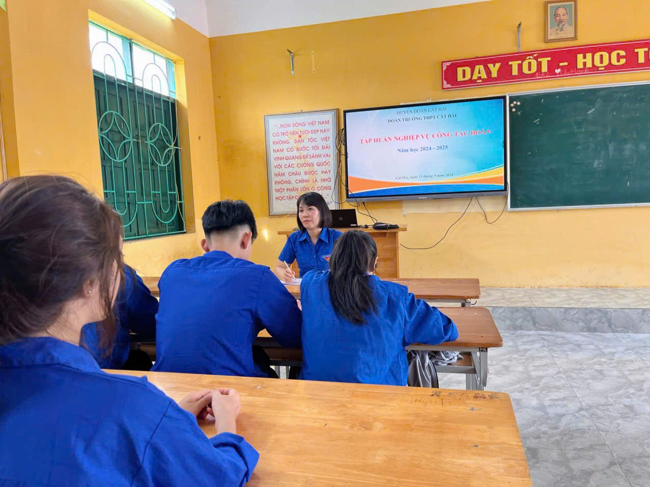 Nhằm nâng cao năng lực, kỹ năng và nghiệp vụ công tác Đoàn cho đội ngũ cán bộ Đoàn chủ chốt, đặc biệt là các đồng chí Ủy viên Ban Chấp hành Đoàn trường và Bí thư Chi đoàn, vừa qua, Đoàn trường THPT Cát Hải đã tổ chức chương trình tập huấn nghiệp vụ công tác Đoàn năm học 2024 – 2025.