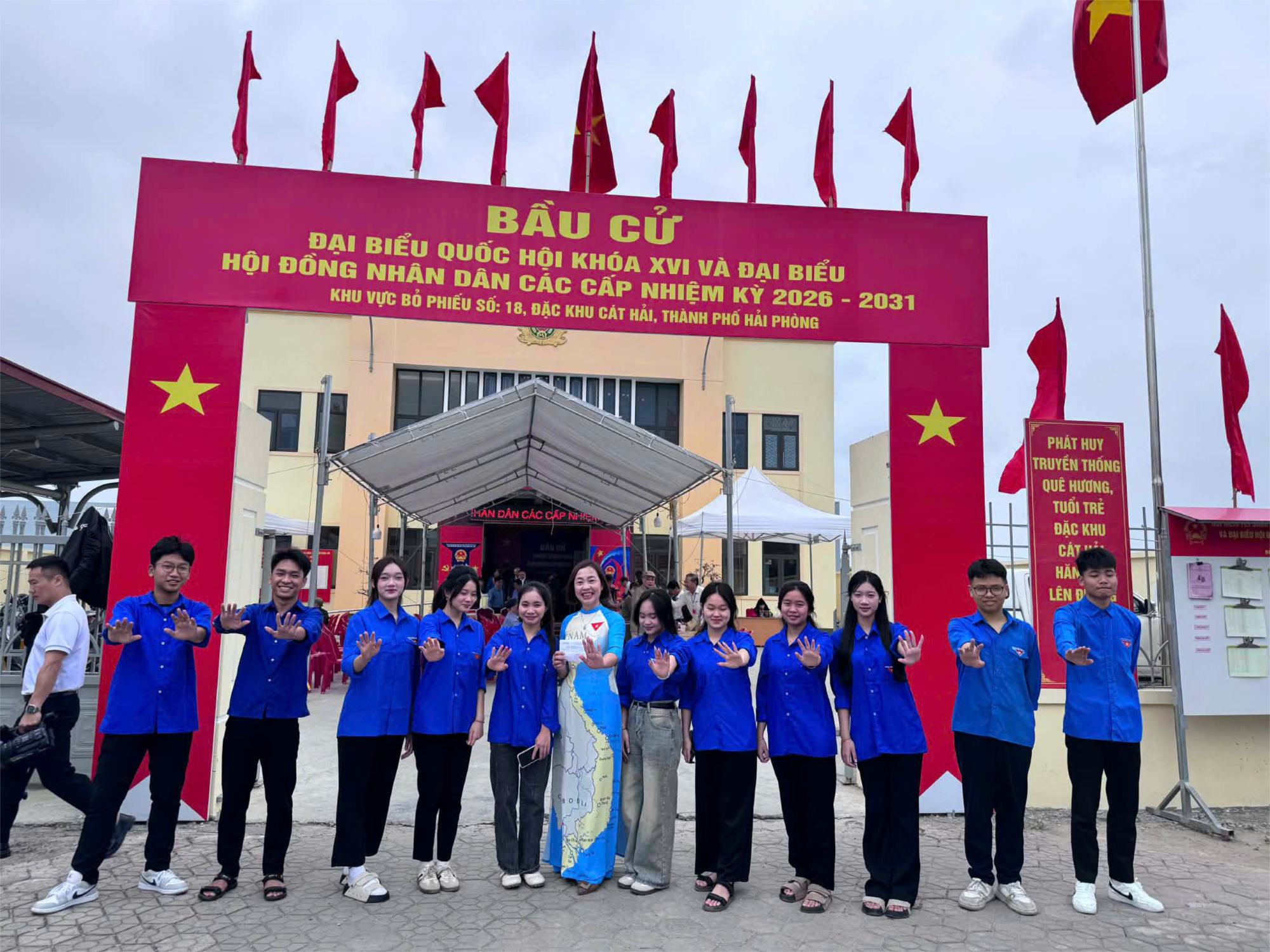 Phát huy tinh thần xung kích, trách nhiệm của tuổi trẻ, đoàn viên Đoàn trường THPT Cát Hải đã tích cực tham gia hỗ trợ công tác bầu cử tại địa phương.
